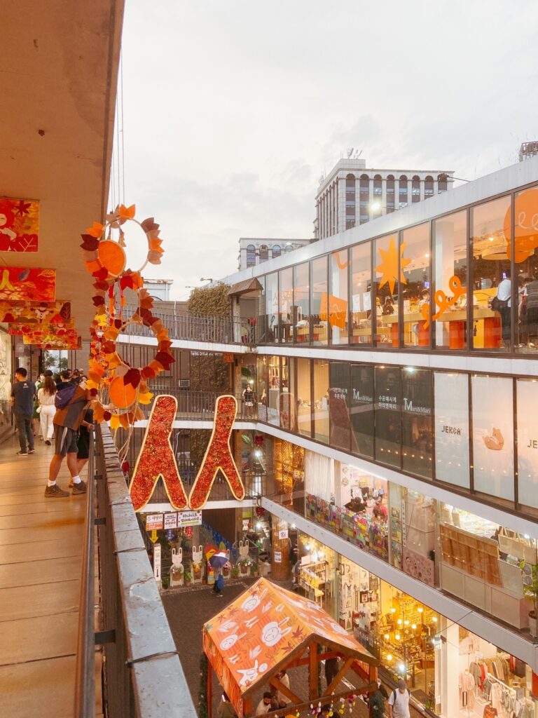As you walk along the main streets you’ll often see students or pre-debut idols busking and performing; it’s always worth stopping to watch as the talent level is genuinely impressive. Hongdae is also packed with trendy restaurants, affordable fast-fashion stores, and an array of fun establishments like karaoke rooms and arcades.